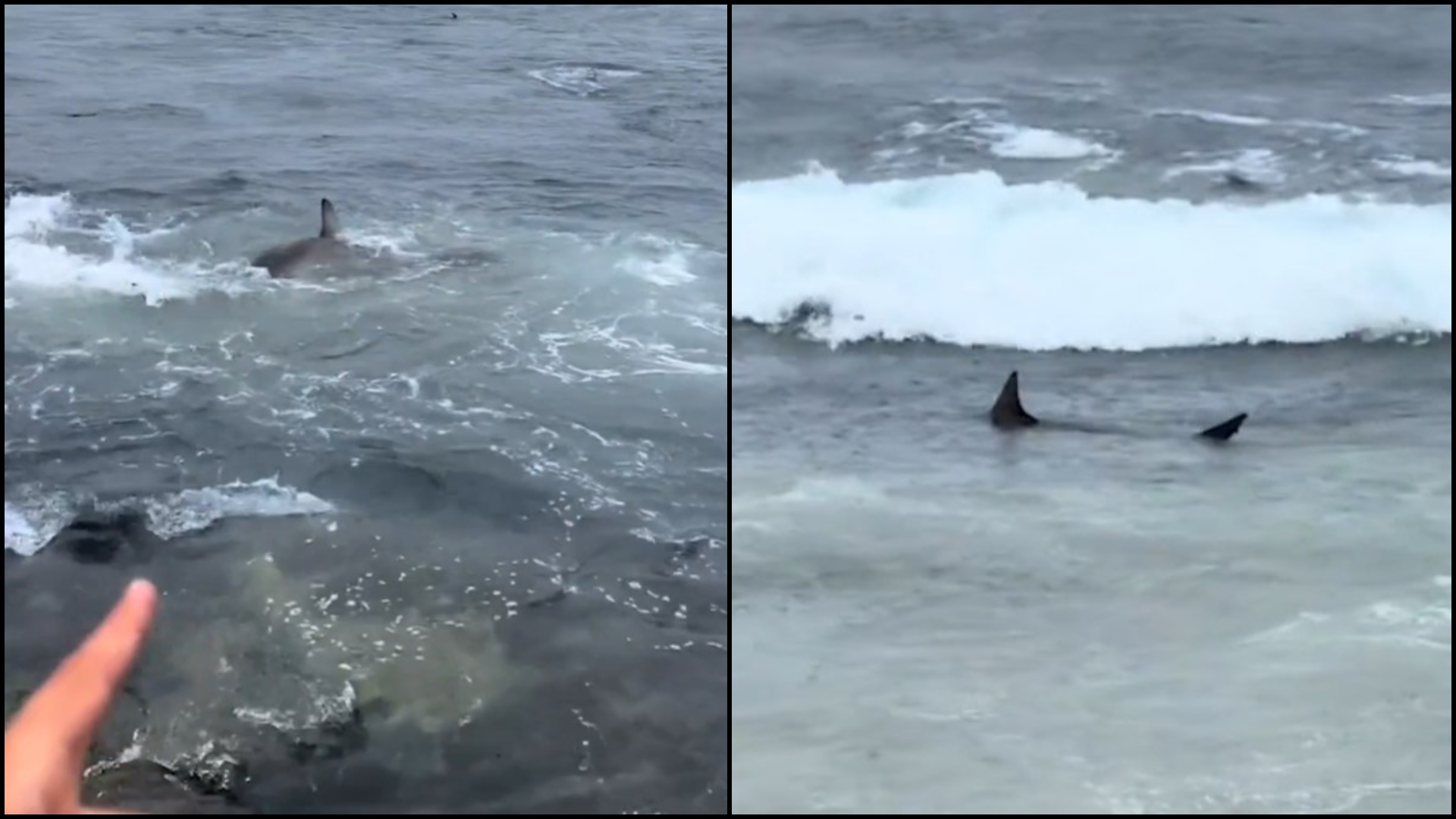 Η εμφάνιση των καρχαριών προκάλεσε μεγάλη έκπληξη σε όσους βρίσκονταν εκείνη τη στιγμή στην παραλία, με πολλούς να απαθανατίζουν το θέαμα τραβώντας βίντεο με τα κινητά τους.