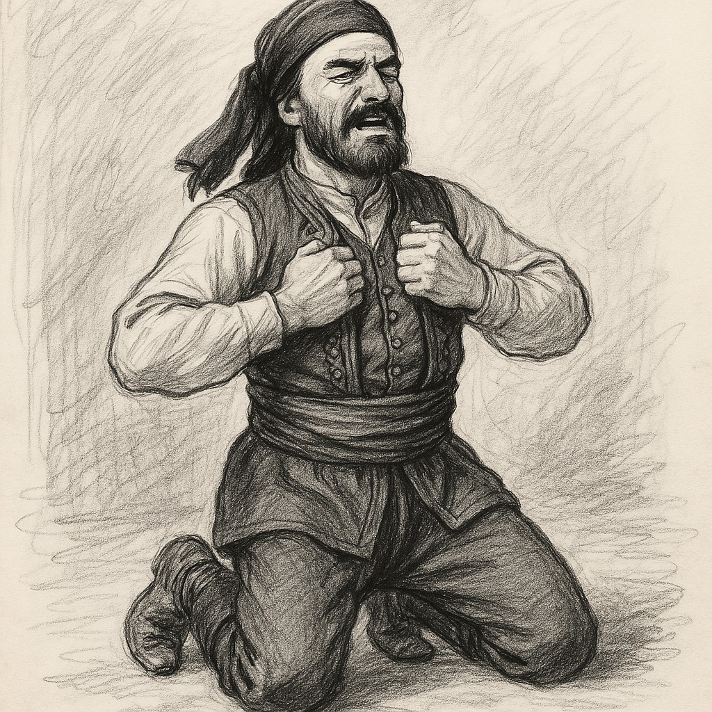 όπως βαστάζ’ το χάλκωμαν / σ’ ση καζαντζή τα χέρια.