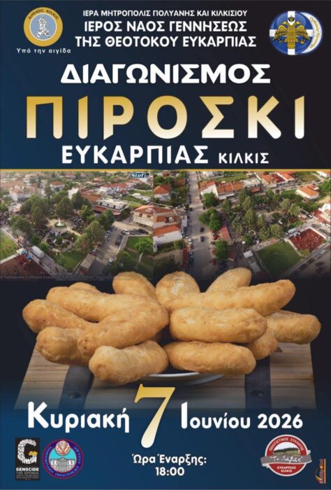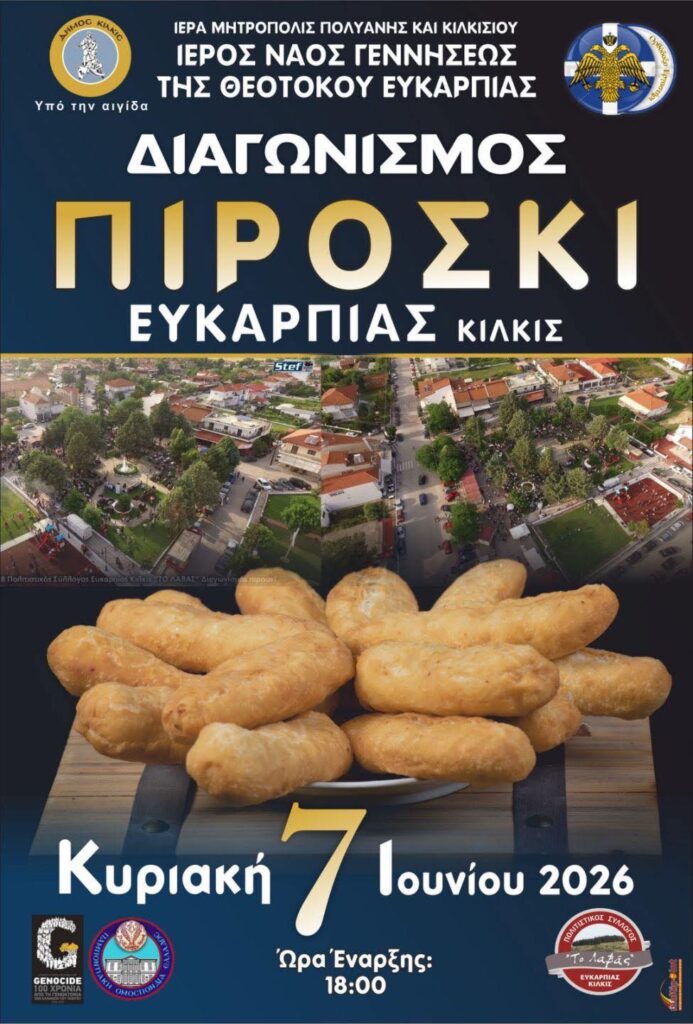 Μια ξεχωριστή γιορτή γεύσης, παράδοσης και ποντιακής φιλοξενίας ετοιμάζεται στην Ευκαρπία Κιλκίς, όπου την Κυριακή 7 Ιουνίου 2026 θα πραγματοποιηθεί ο Διαγωνισμός Πιροσκί Ευκαρπίας Κιλκίς.
