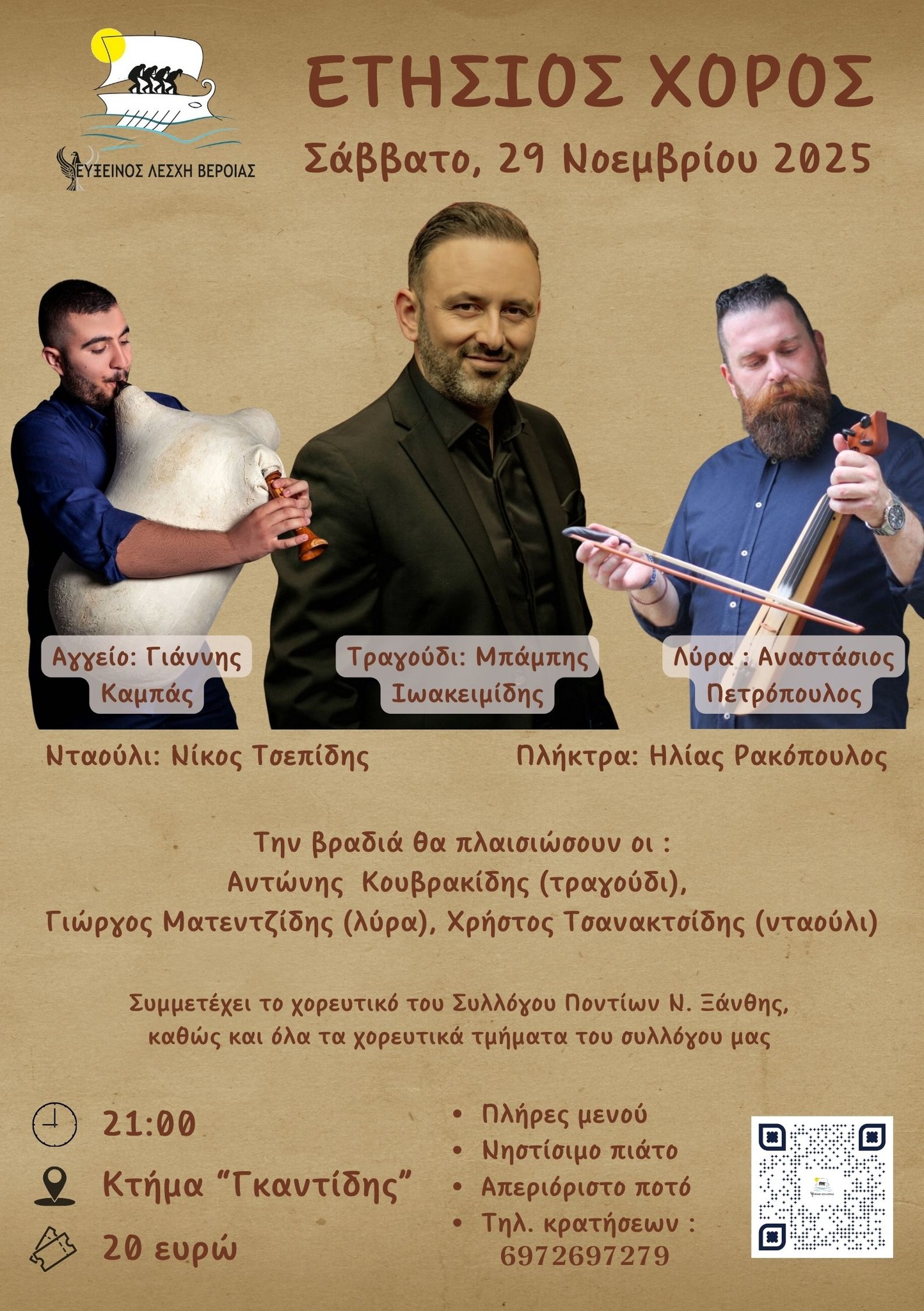 Η αντίστροφη μέτρηση για τον ετήσιο χορό των τμημάτων της Λέσχης έχει ξεκινήσει, με τη μεγάλη εκδήλωση να προγραμματίζεται για το Σάββατο 29 Νοεμβρίου 2025 στο “Κτήμα Γκαντίδης”, στον δρόμο προς Άγιο Γεώργιο Βεροίας.