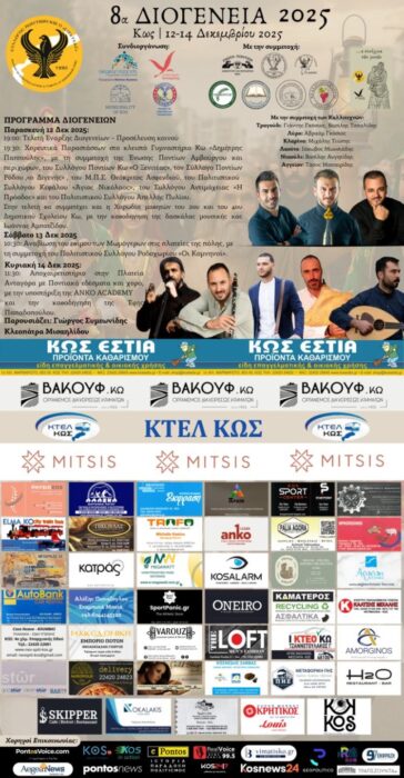 Η Κως μπαίνει σε ρυθμούς Διογενείων και το νησί ήδη… βουίζει! Τα 8α Διογένεια ετοιμάζουν μια έναρξη που αναμένεται να συζητηθεί όσο καμία άλλη. Την Παρασκευή 12 Δεκεμβρίου, στις 19:30, το Κλειστό Γυμναστήριο «Δημήτρης Παππούλης» θα μετατραπεί στο μεγαλύτερο πολιτιστικό σημείο συνάντησης του χειμώνα, σηματοδοτώντας 21 χρόνια αδιάλειπτης πορείας, τιμής και πολιτιστικής προσφοράς του Συλλόγου Ποντίων Κω – ο Ξενιτέας.