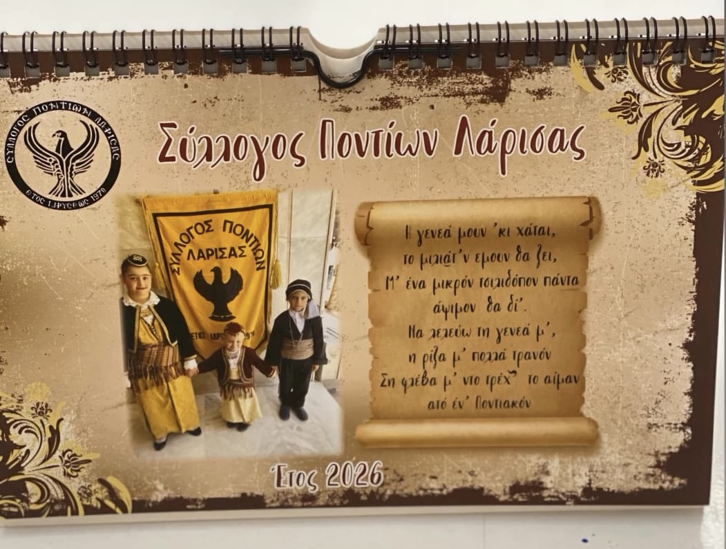 Με έντονο συμβολισμό και σαφή αναφορά στη συνέχεια της ποντιακής ταυτότητας, ο Σύλλογος Ποντίων Λάρισας παρουσιάζει το ημερολόγιο του 2026.