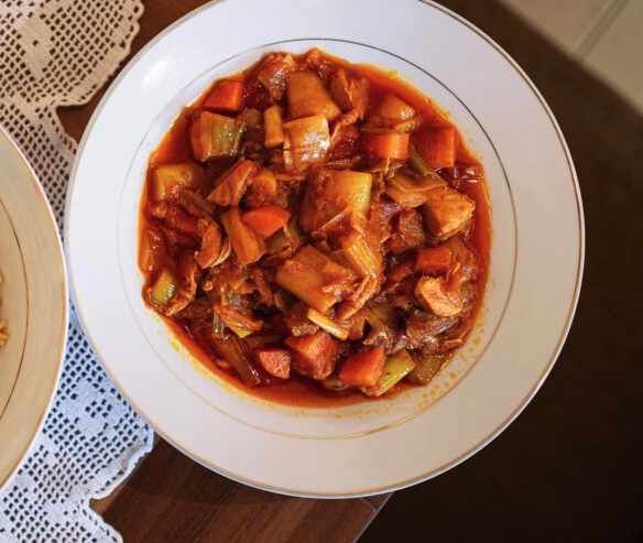 - Ξύνοντας τον πάτο της κατσαρόλας με ξύλινη κουτάλα για να διαλυθούν τα νόστιμα καμένα υπολείμματα.