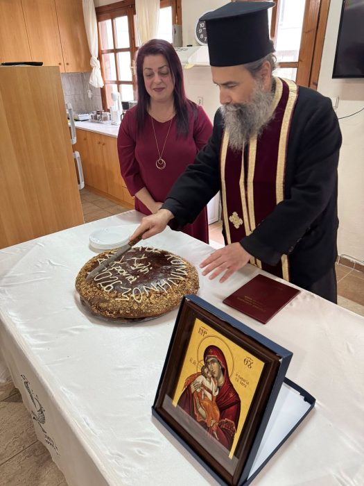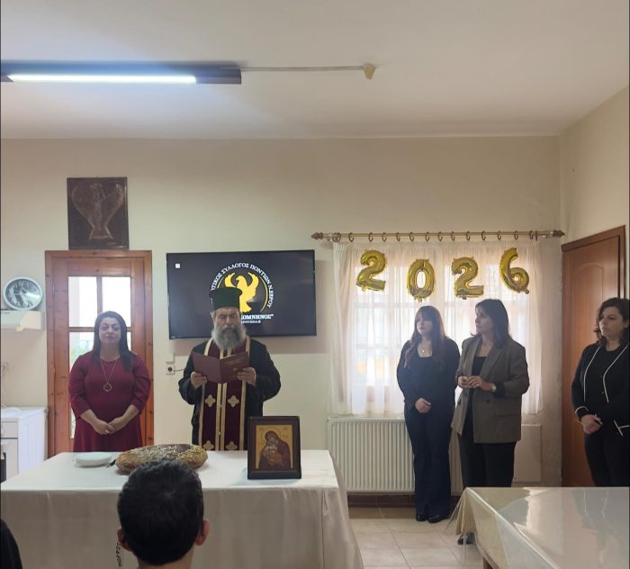 Την ευλογία της βασιλόπιτας τέλεσε ο πρωτοπρεσβύτερος πατέρας Χρήστος από την ενορία της Αγίας Κυριακής. Αφού ευχήθηκε σε όλους καλή και ευλογημένη χρονιά, απηύθυνε κάλεσμα προς τα παιδιά να αγαπήσουν και να μάθουν την ποντιακή διάλεκτο, τονίζοντας ότι η γλώσσα αποτελεί βασικό πυλώνα της πολιτιστικής συνέχειας. Μάλιστα, σε μια ξεχωριστή στιγμή, τα παιδιά ανταποκρίθηκαν και έψαλαν τα πρωτοχρονιάτικα κάλαντα.