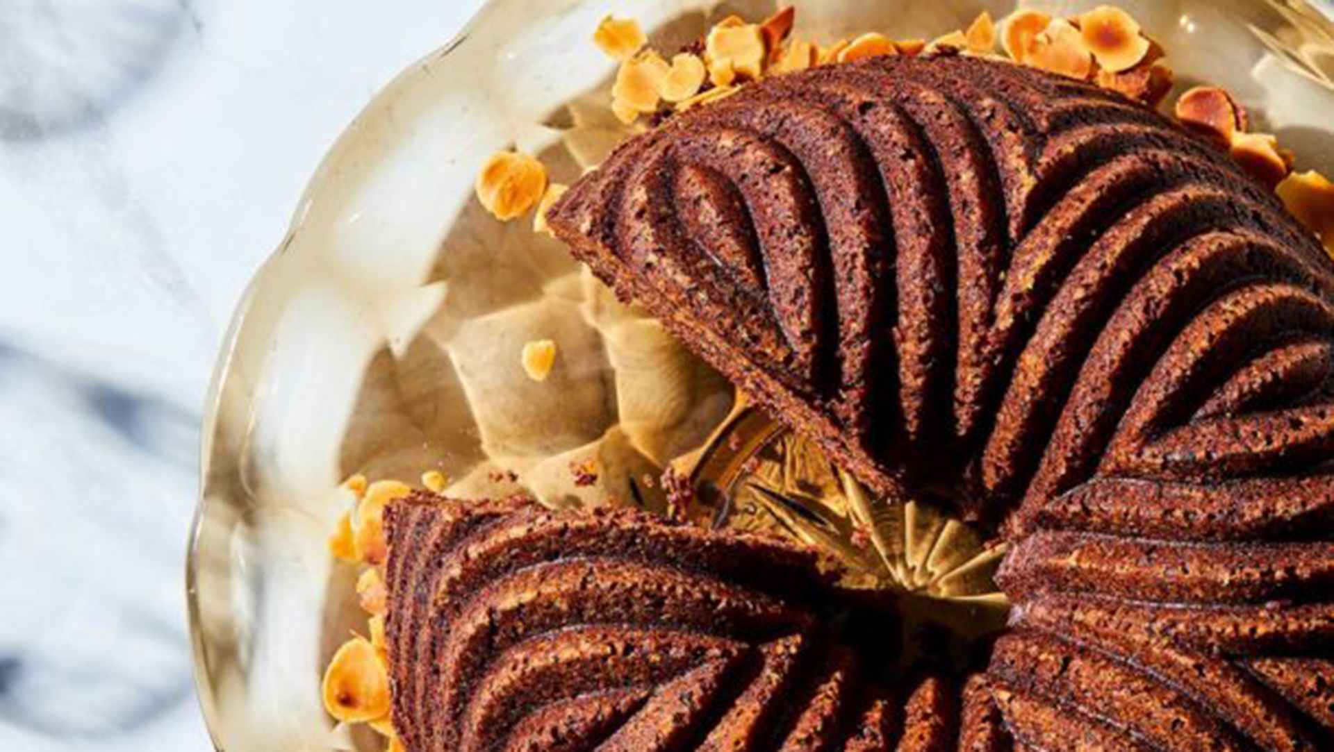 - Αδειάζουμε το μείγμα, ισιώνουμε την επιφάνεια και γαρνίρουμε όλη την επιφάνεια με το αμύγδαλο φιλέ.