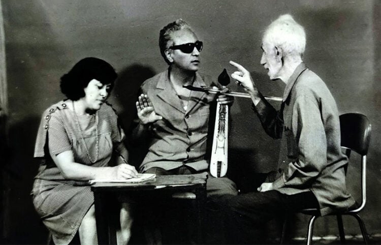Ο Στάθης Ευσταθιάδης με την αδελφή του Μαρία σε διαδικασία καταγραφής | ΠΗΓΗ: archive-efstathiadis.gr