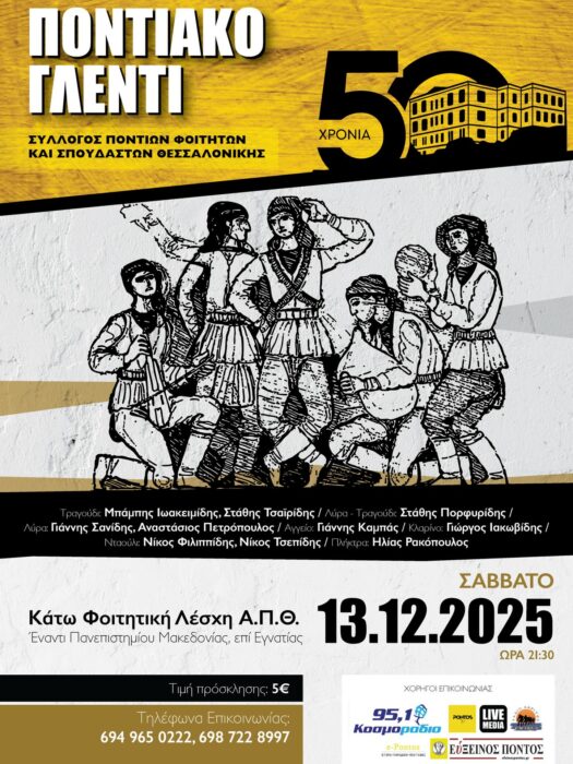 Ο Σύλλογος Ποντίων Φοιτητών και Σπουδαστών Θεσσαλονίκης ετοιμάζεται για τον Ετήσιο Χειμερινό Χορό του, ο οποίος θα πραγματοποιηθεί το Σάββατο 13 Δεκεμβρίου στην Κάτω Φοιτητική Λέσχη του ΑΠΘ, στις 21:30. Πρόκειται για μία από τις πιο καθιερωμένες και ζωντανές εκδηλώσεις του Συλλόγου, που κάθε χρόνο συγκεντρώνει φοιτητές, αποφοίτους και φίλους της ποντιακής παράδοσης.
