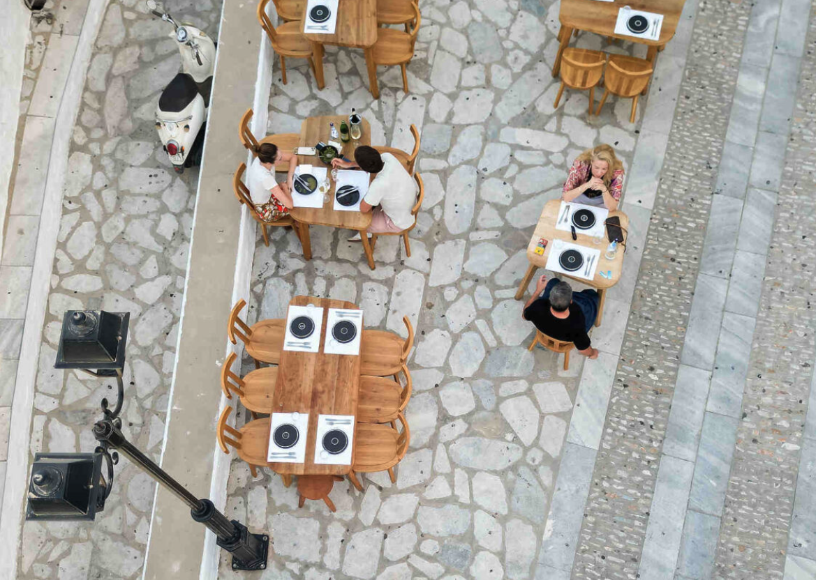 «Το βάθος και η νοστιμιά που βρίσκουμε στην ισπανική κουζίνα, η λιτότητα υλικών που έχει η βόρεια Ευρώπη, τα τοπικά κυκλαδίτικα υλικά, η συνέπεια –που είναι σημαντικότερη από την καινοτομία και τον εντυπωσιασμό–, όλα μαζί είναι που συνθέτουν τη γενική ιδέα, και μας εμπνέουν να εξελισσόμαστε», λέει ο Βαγγέλης. «Ποντάρουμε στην οξύτητα, την υφή και το βάθος γεύσης». Συνεργάζεται με ντόπιους ψαράδες και αυτοί του φέρνουν ό,τι πιαστεί στα δίχτυα τους. Εκείνος το διαχειρίζεται ό,τι κι αν είναι αυτό, αρκεί να είναι φρέσκο. Κι έτσι στις βασικές συνταγές του εναλλάσσονται από σκάροι και λίτσες μέχρι λαπίνες, μαυρόψαρα και κυνηγοί.
