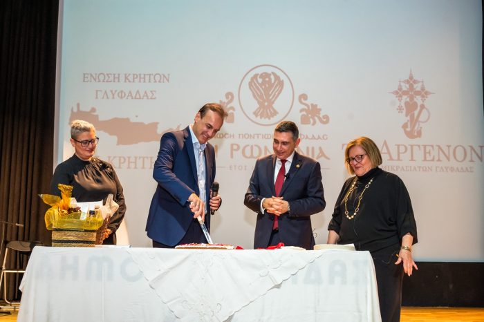 Κοινή εκδήλωση για την κοπή της πρωτοχρονιάτικης πίτας πραγματοποίησαν στις 11 Ιανουαρίου, στο θέατρο «Μελίνα Μερκούρη» στη Γλυφάδα, οι Ενώσεις Ποντίων, Κρητών και Μικρασιατών της πόλης. Η αίθουσα ήταν κατάμεστη, γεγονός που επιβεβαίωσε τη δυναμική των πολιτιστικών συλλόγων και το ενδιαφέρον της τοπικής κοινωνίας για δράσεις με ιστορικό και πολιτιστικό αποτύπωμα.